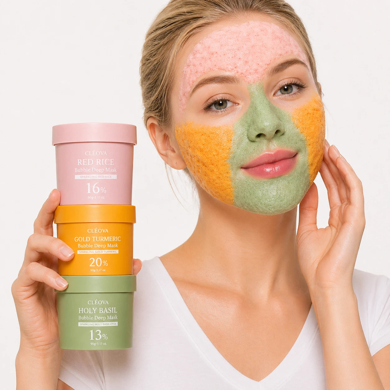 Jede Zone deines Gesichts hat ihre eigenen Bedürfnisse. Echte Frauen testen Heiliges Basilikum, Goldene Kurkuma und Red Rice — weil deine Haut eine Pflege verdient, die wirklich zu ihr passt.